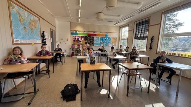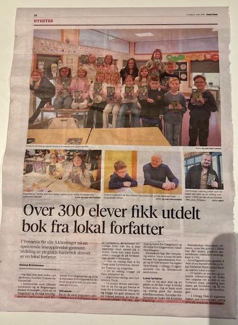 Uken før påske delte vi ut bøkene til ivrige elever på 3.trinn. Elevene på Skarpenland skole i Vennesla kommune fikk komme i lokalavisen, noe som ble EKSTRA stas :)